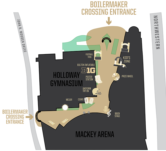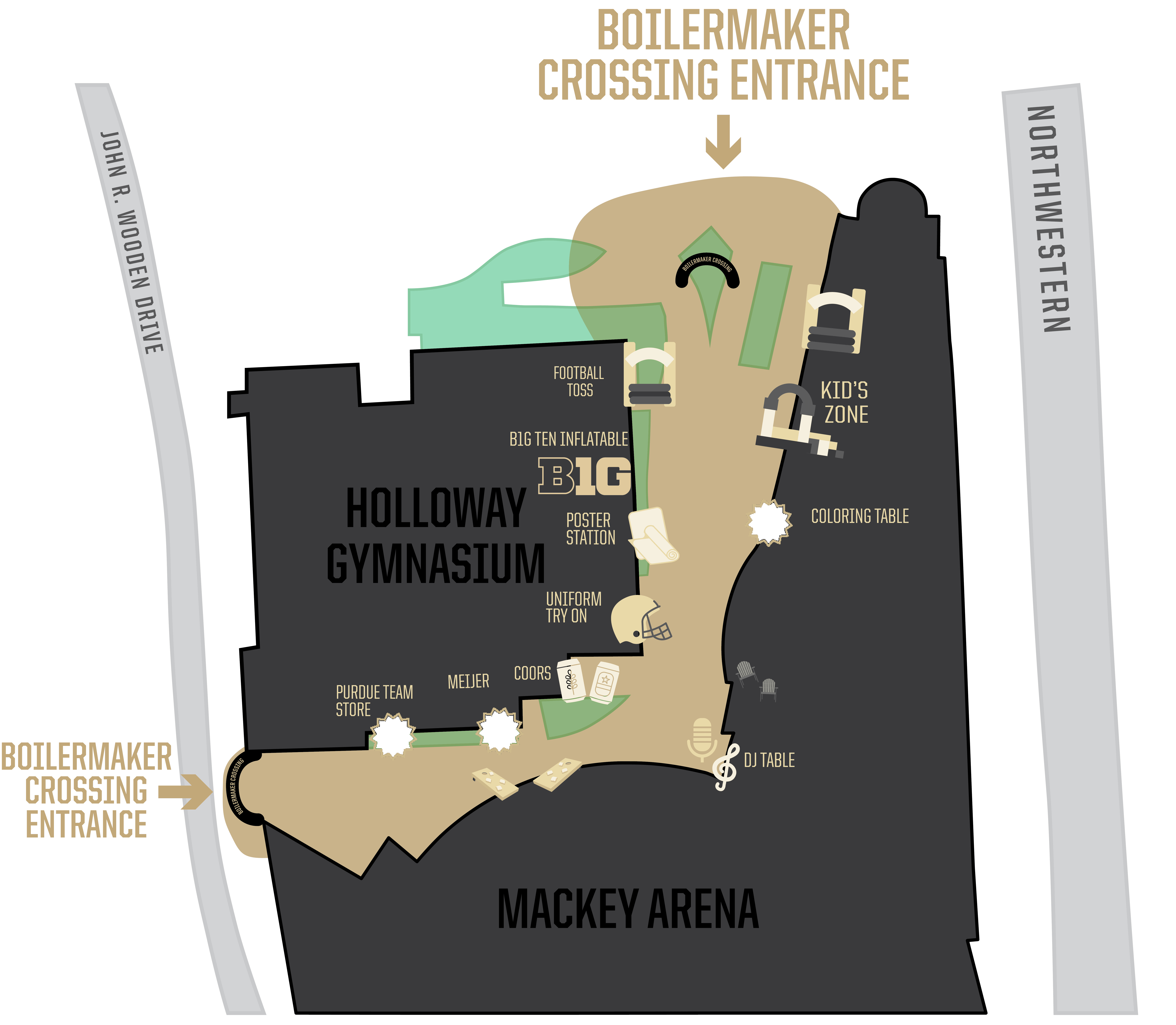 THERE IS NO GAME TICKET REQUIRED FOR ENTRY, BOILERMAKER CROSSING IS OPEN TO ALL FANS!